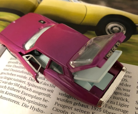 "Diese zwei SM sind aus den 70er Jahren und super gut erhalten. Der Pinkfarbene ist von Gorgi Toys und der blaue Gendarmerie ist von Verem. Beide je 1/43.