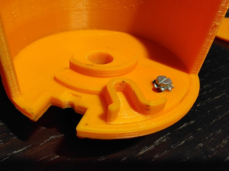 Die Nockenwelle besteht aus zwei Teilen, die zusammengesteckt werden, da sich die Welle sonst nicht mit ausreichender Qualität drucken lässt. Es gibt zwei verschiedene Versionen, eine ohne und eine mit einem Drehgriff, um von unten die Welle einfach und millimetergenau drehen zu können.