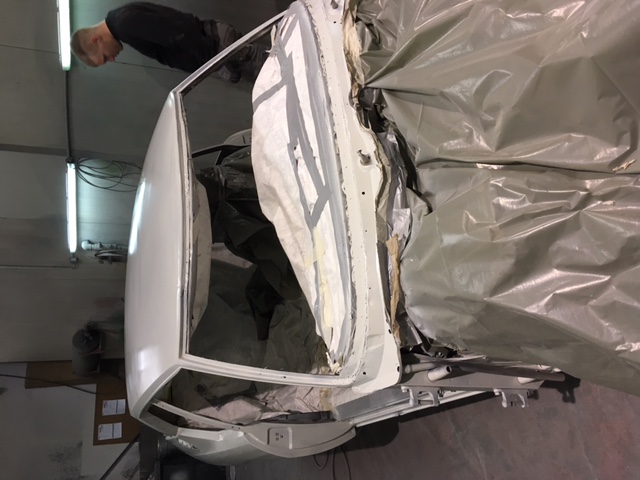 Die Türen und Kotflügel waren zum Glück wesentlich besser als zunächst befürchtet. Aber das Dach im Bereich des vorderen Scheibenrahmens bestand aus einem nicht originalen Reparaturblech und jeder Menge Spachtel.